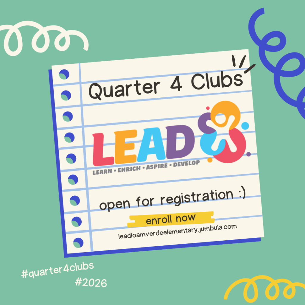 Friendly reminder that club registration opened on 3/6/26.🎉 We’re excited to welcome students into another round of fun and engaging clubs. Please use the link below to register your student. We can’t wait to see everyone participate! 😊 https://leadlomaverdeelementary.jumbula.com/