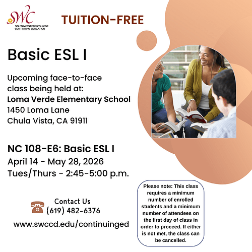 For more info. contact Elsie Delgadillo (CS Coordinator) @ (619) 420-3940 xtn:370403 or Room:403