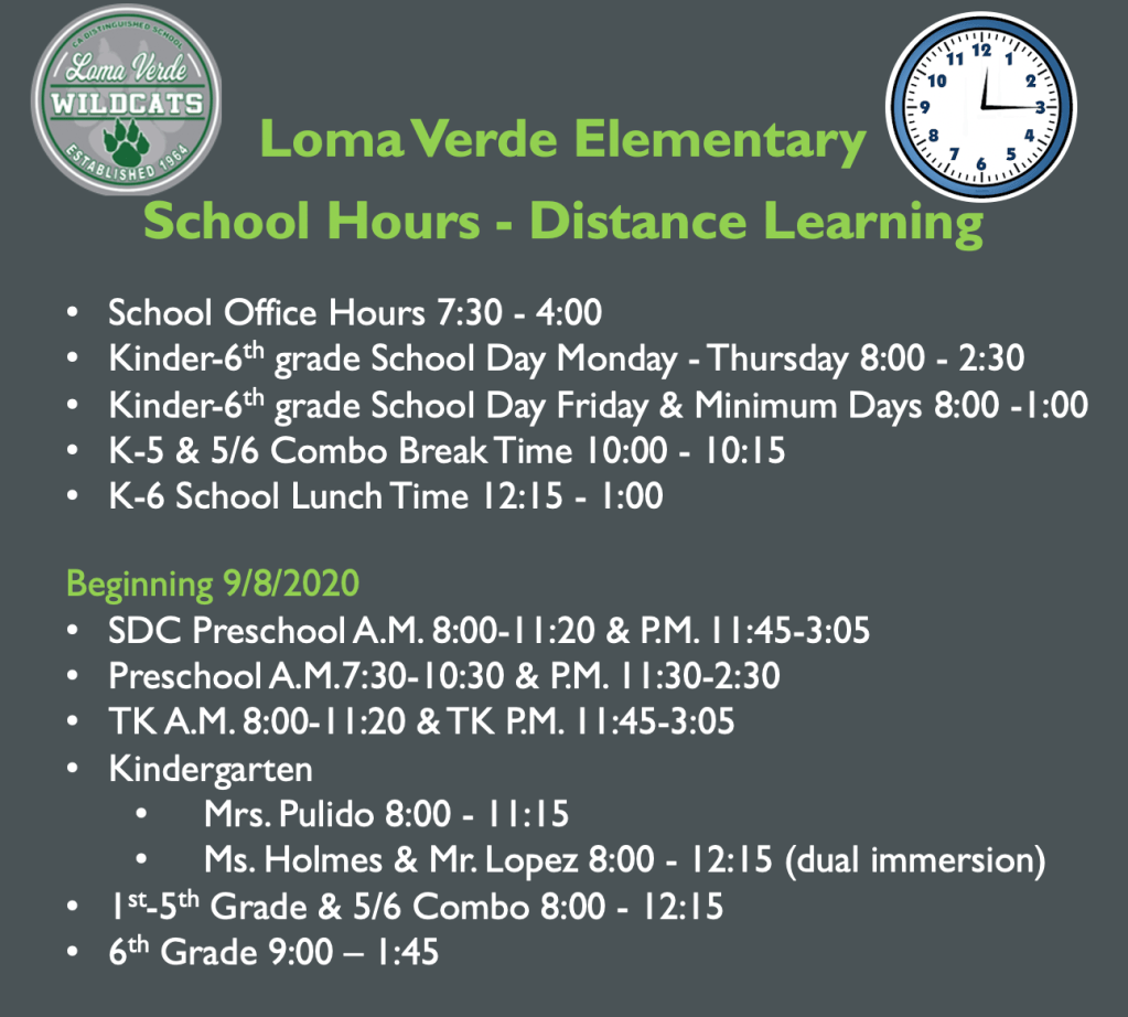 We had a fantastic first week of distance learning, despite a few minor technical issues. Thank you to our parents, students, and staff for persevering through the first week distance learning. The amazing family support, passionate teachers, and helpful staff make Loma Verde Elementary School a safe and outstanding place for children to thrive!
