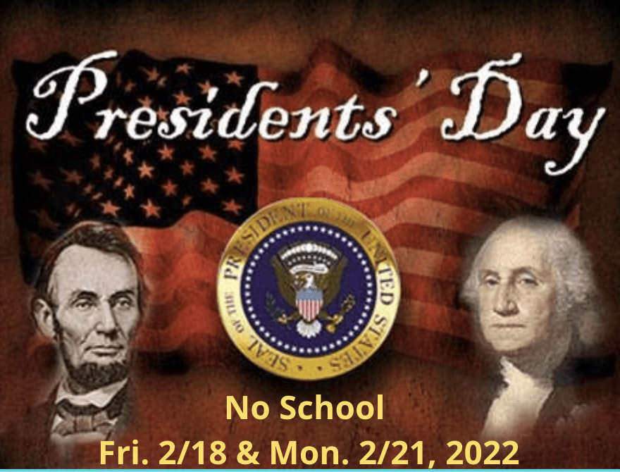 - Monday, 2/21 NO SCHOOL Legal Holiday-Washington Day