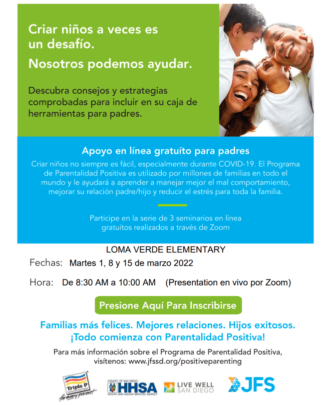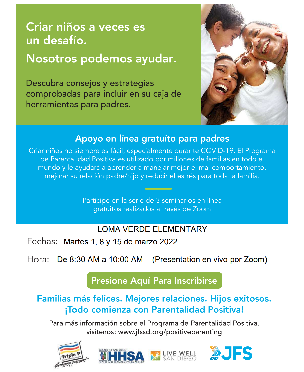 ¡POR FAVOR ÚNETE A NOSOTROS! Serie de Seminarios del Programa de Crianza Positiva
