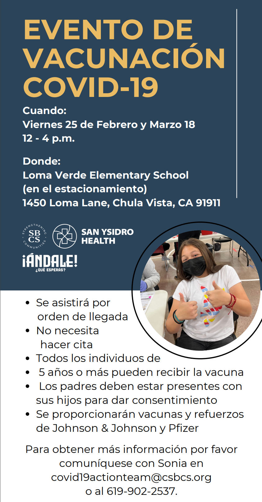 - Friday, 3/18 12:00-4:00 COVID Vaccination Clinic at Loma Verde