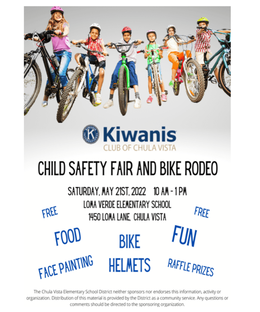 - Saturday, 5/21 10:00 AM-1:00 PM Loma Verde Child Safety & Bike Rodeo Event