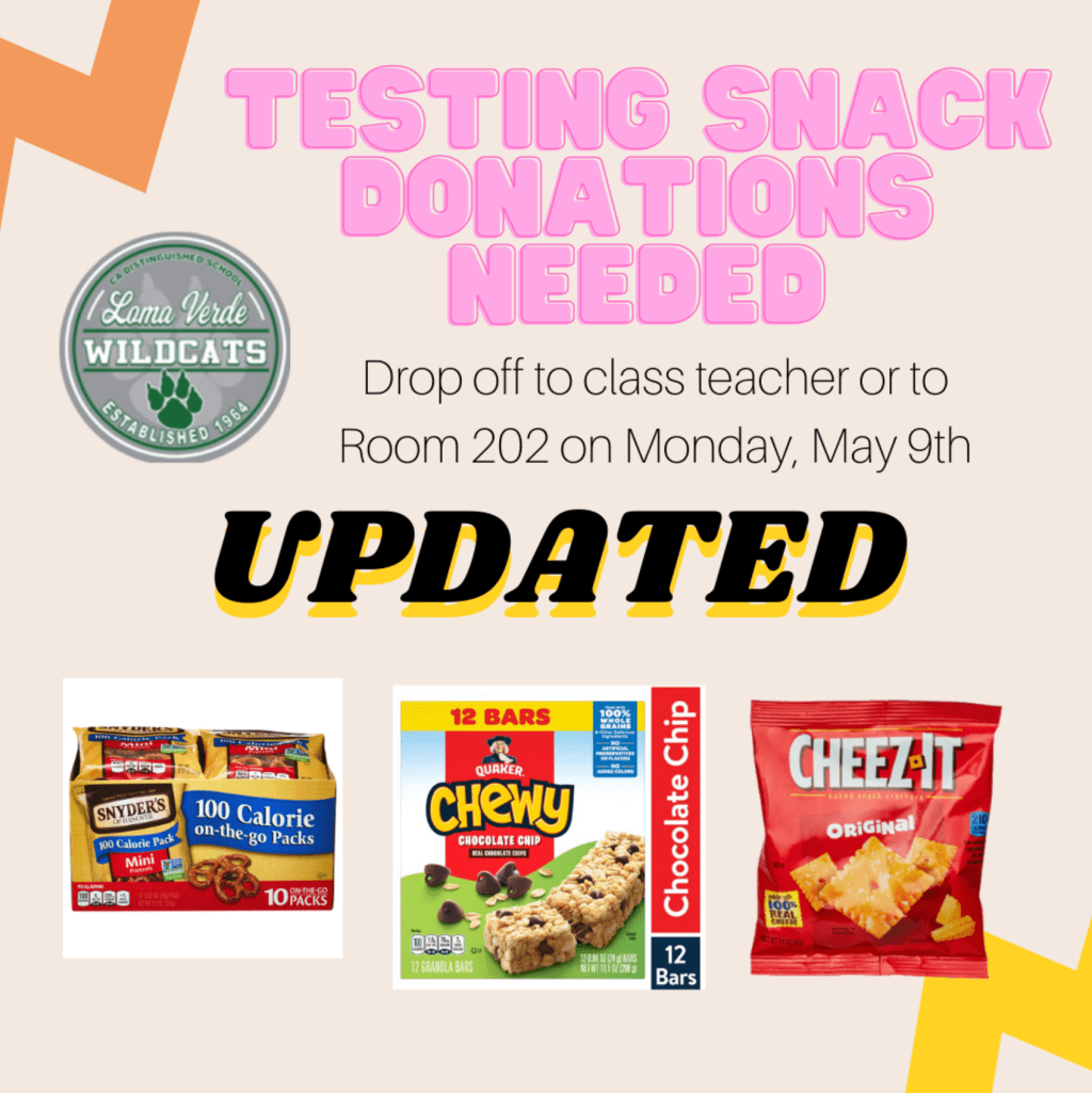 CAASPP Testing for 3rd-6th graders is here! 🙈 Let’s support these amazing students by donating snacks to help them be energized and focused during standardized testing! Peace Patrol has volunteered to help collect and organize snack packs for some upper-grade classrooms.