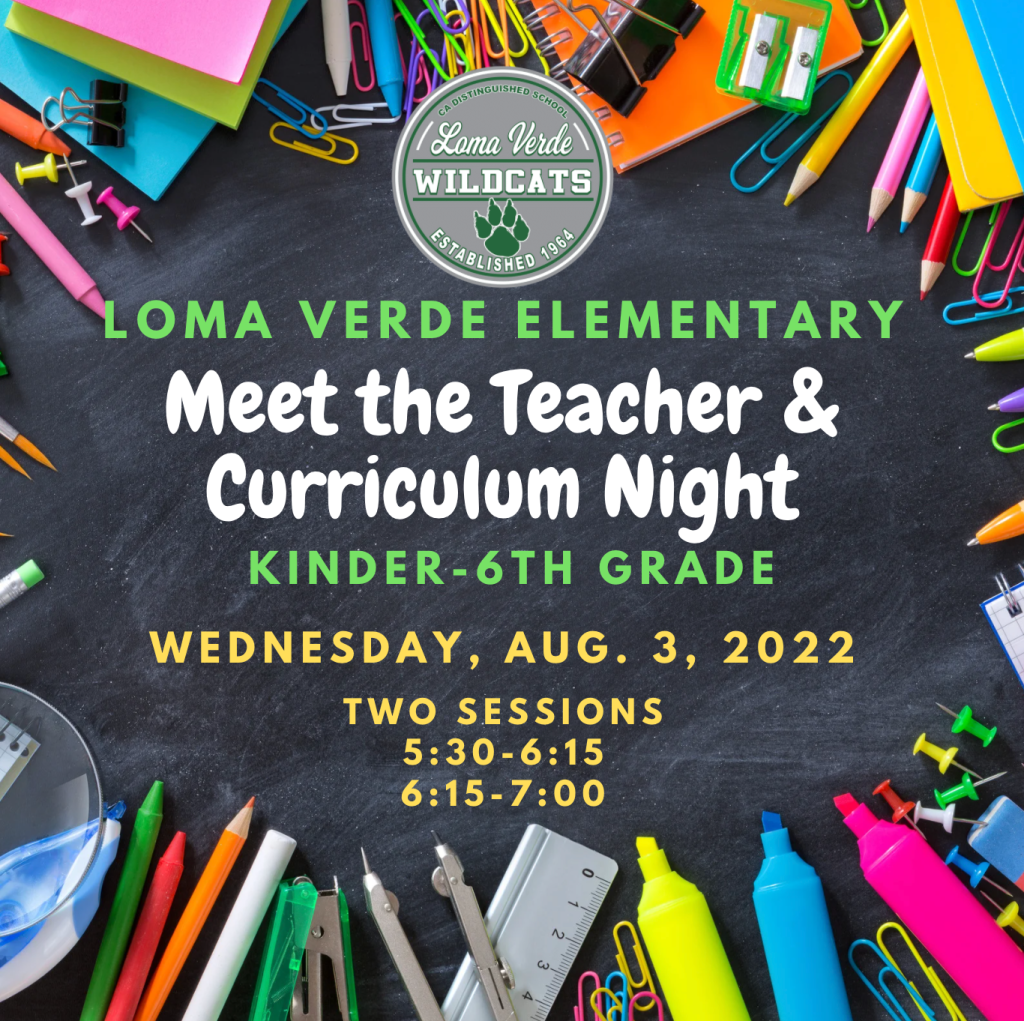 Meet the Teacher/Curriculum Night – Wednesday, August 3, 2022