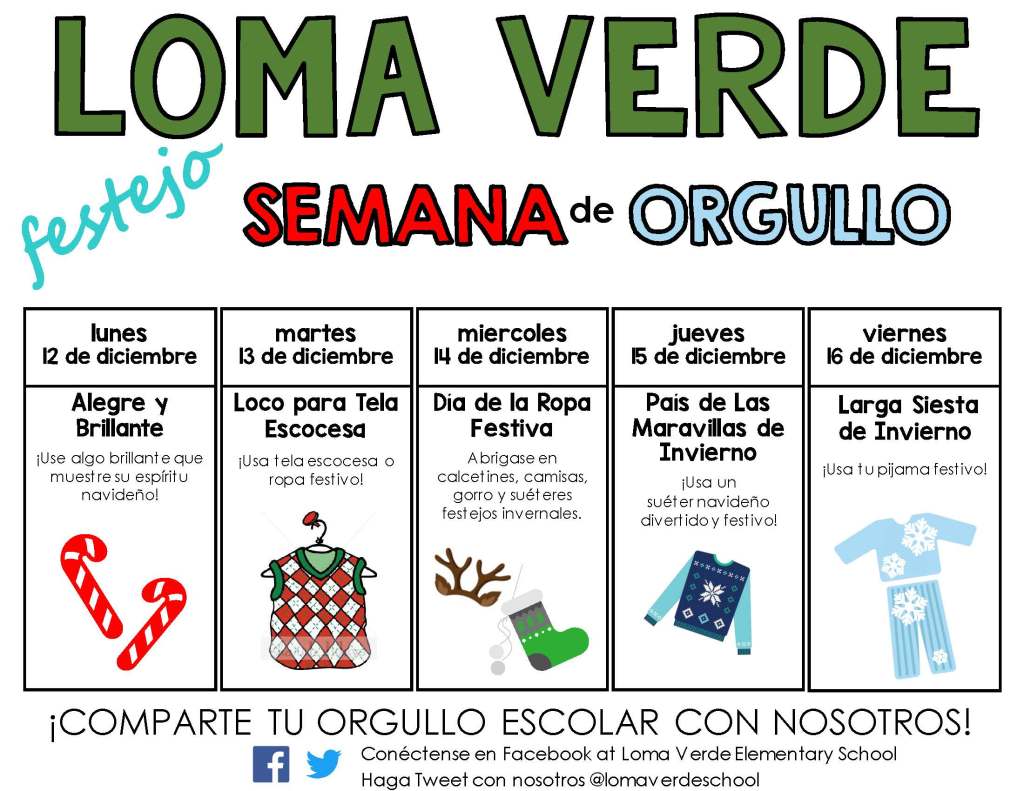 - Friday, 12/9 1:00 PTO Spirit Shirt Sale, Loma Verde Food Distribution & Community Resource Fair