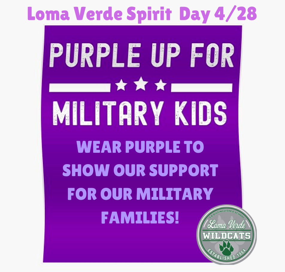 - Friday, 4/28 Spirit Day-Wear Purple to Show Your Support for Military Families!
