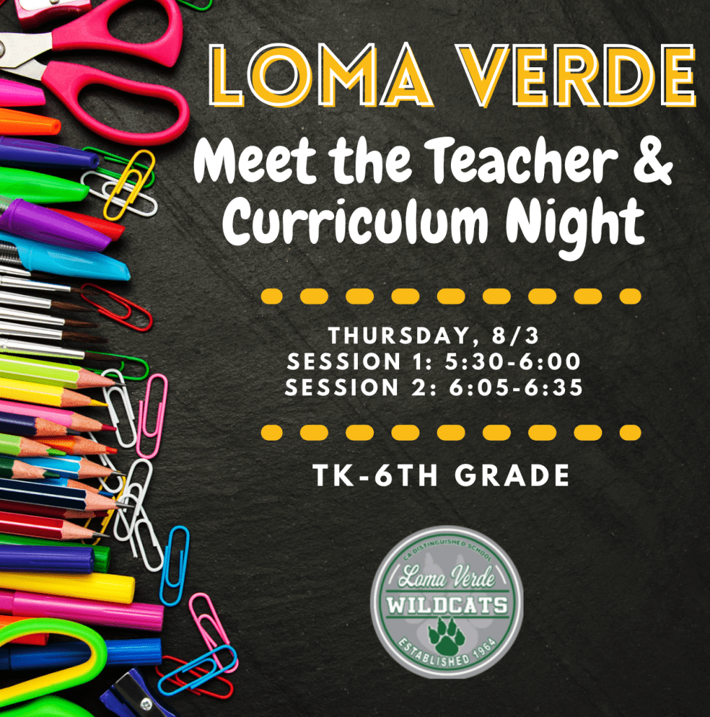 Meet the Teacher/Curriculum Night – Thursday, August 3, 2023