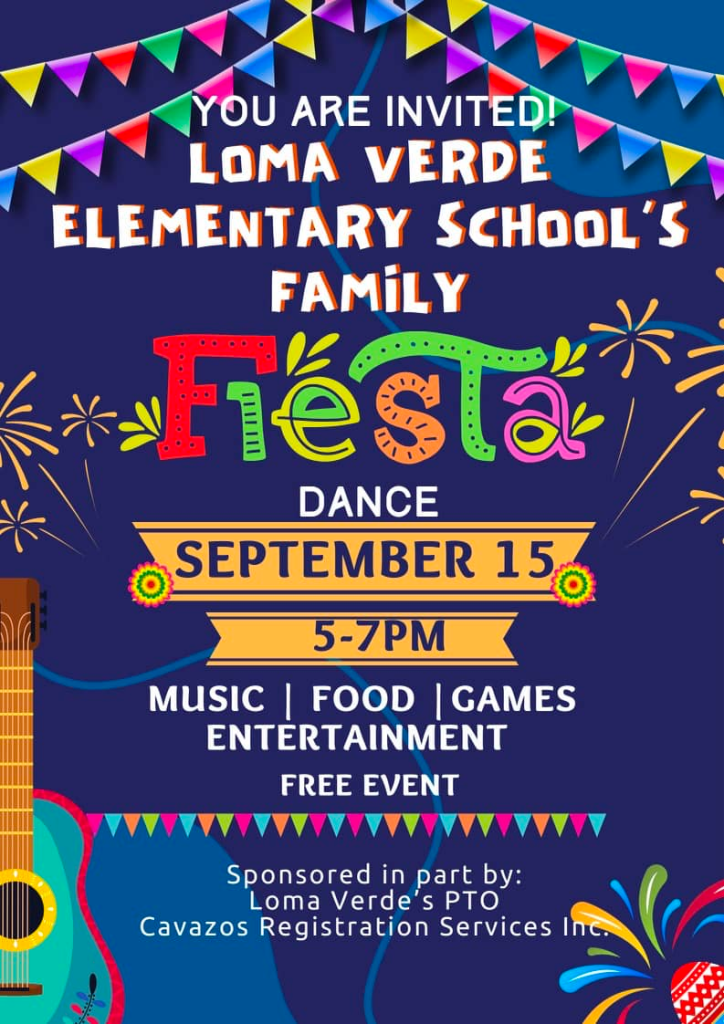 - Friday, 9/15 5:00-7:00 Loma Verde PTO Family Fiesta Dance