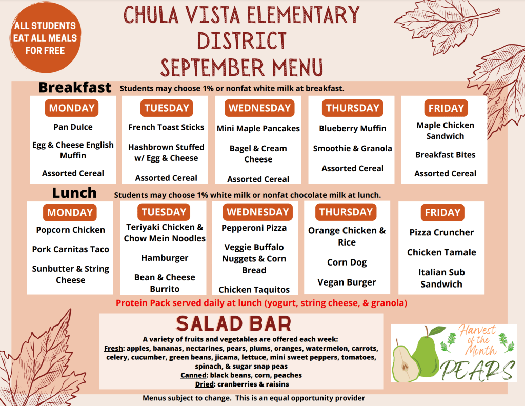 Click here for the preschool breakfast and lunch menu. See the menu below for K-6 students.