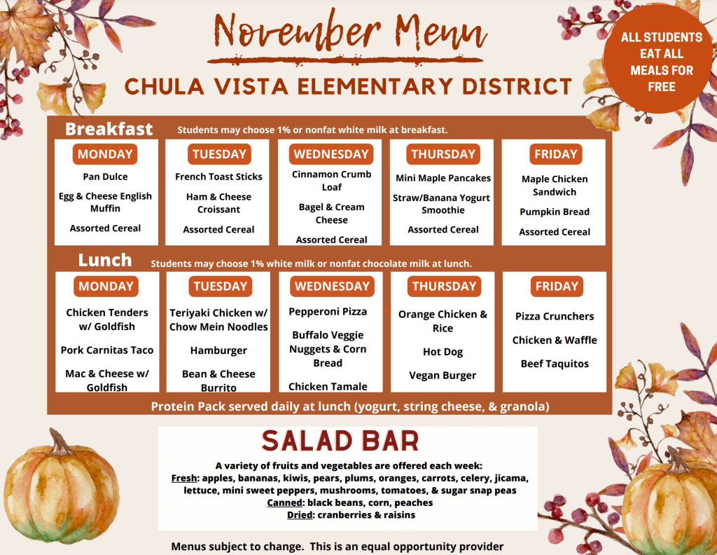 Click here for the preschool breakfast and lunch menu. See the menu below for K-6 students.