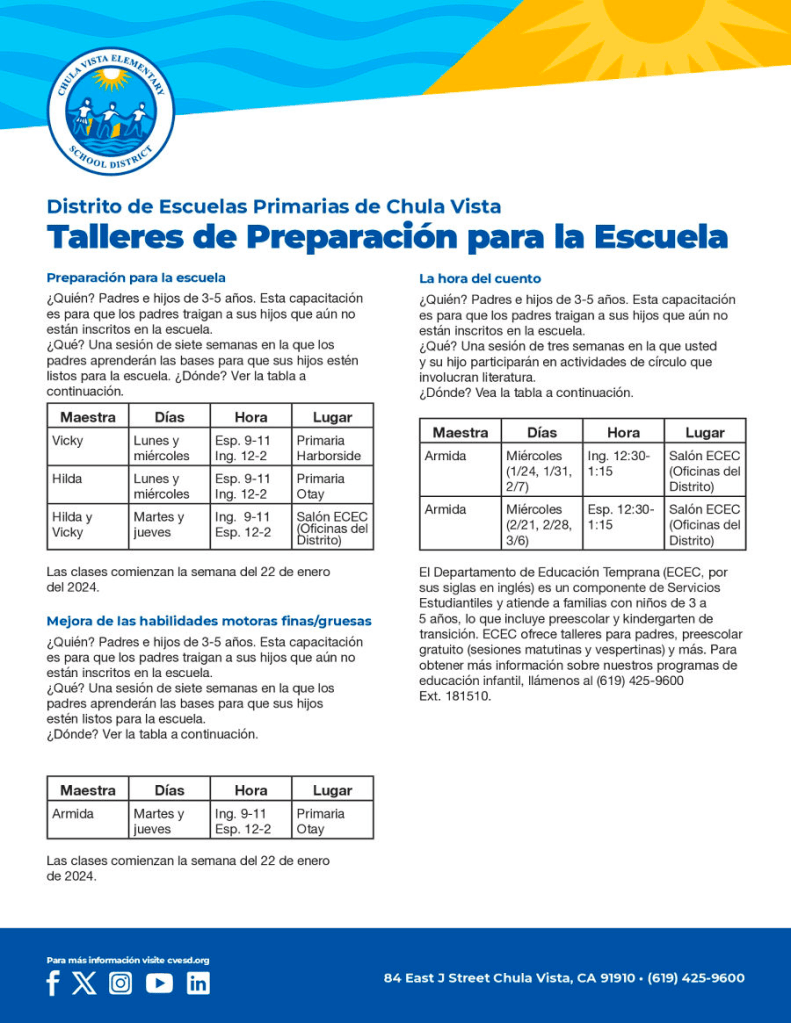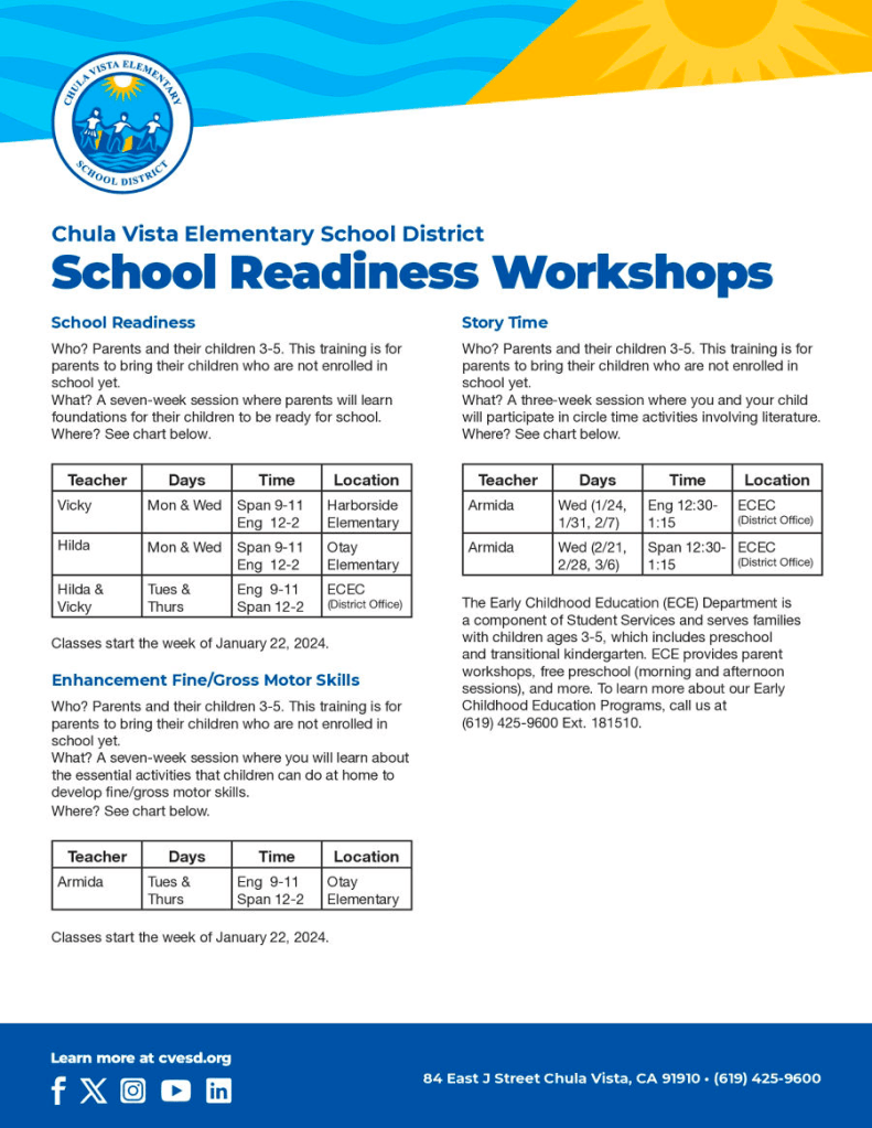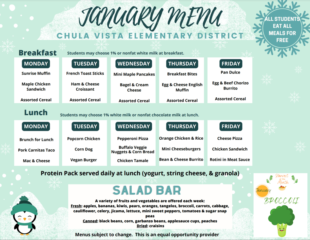 - Wednesday, 1/31 8:15 Coffee with the Principal & ELAC Meeting Guest Speaker: Chula Vista Police Department SRO “Gun Safety Awareness” presentation