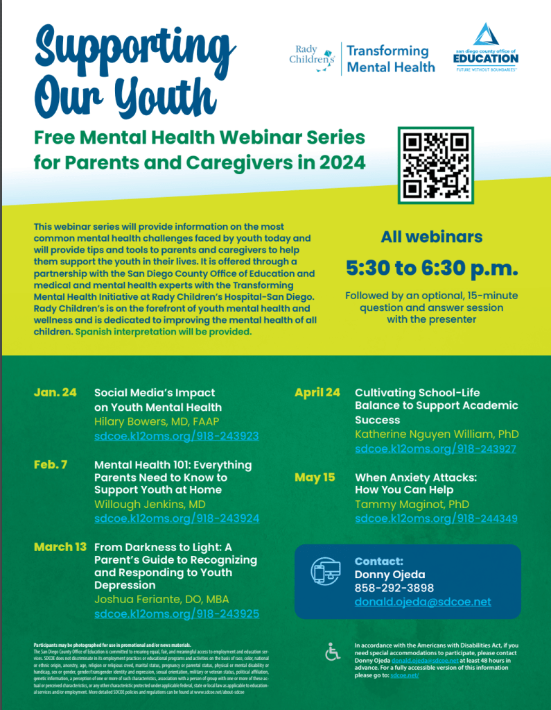 - Wednesday, 1/24 5:30 Parent Presentation Online “Social Media’s Impact on Youth Mental Health”
