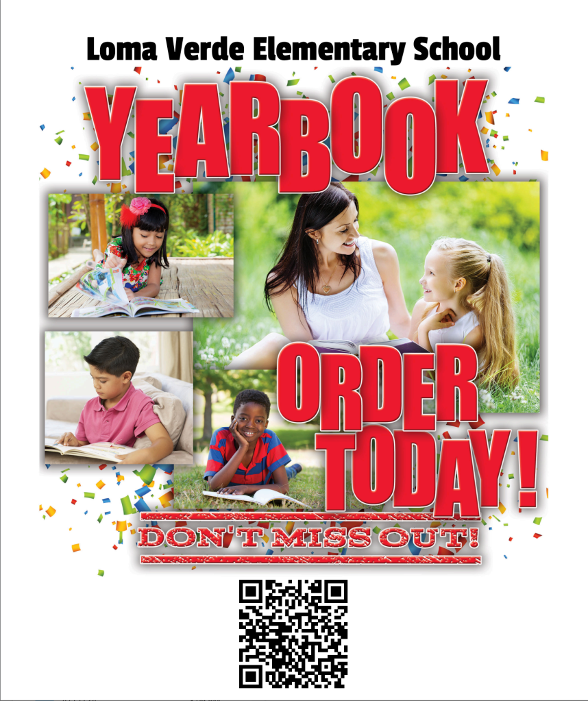 The 2023-2024 Loma Verde yearbook includes all grades and features photos of students, teachers, staff, school clubs, and events. It is a great way for your Wildcats to remember their time at Loma Verde! Online orders are done through the QR code above or click on the LINK. Preorder your yearbook for $16.57. All online orders are due by 4/26/24. A limited supply of yearbooks will be available for purchase at the end of the year for $20. Yearbooks will be distributed during the last week of school.