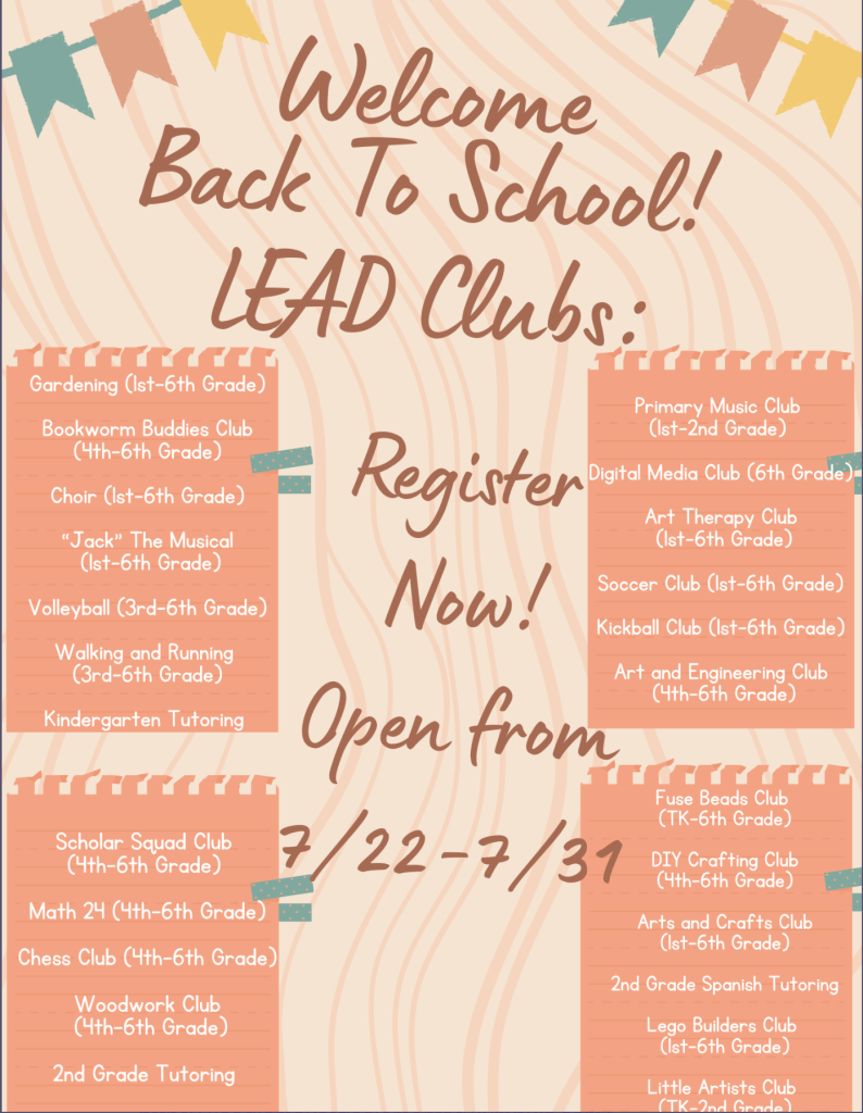 Just a friendly reminder to register your students for after-school activities! LEAD Clubs registration is now open. Don’t miss out on this great opportunity for enrichment and fun! https://leadlomaverdeelementary.jumbula.com/