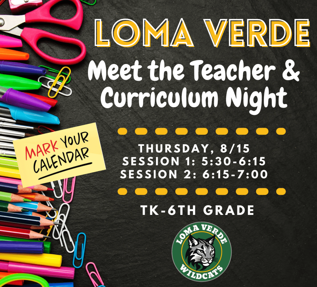 - Friday, 8/23 8:00-8:15 a.m. Loma Verde Community School Launch Assembly! (Parents welcome!)
