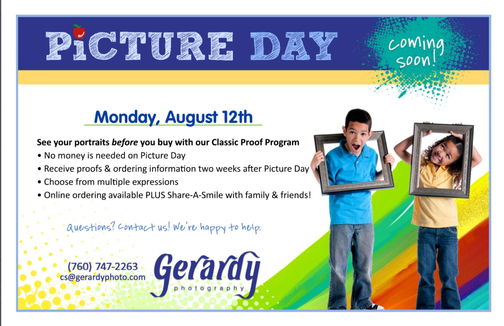 Don’t forget about our School Picture Day on Monday, 8/12, and please plan on attending the Meet the