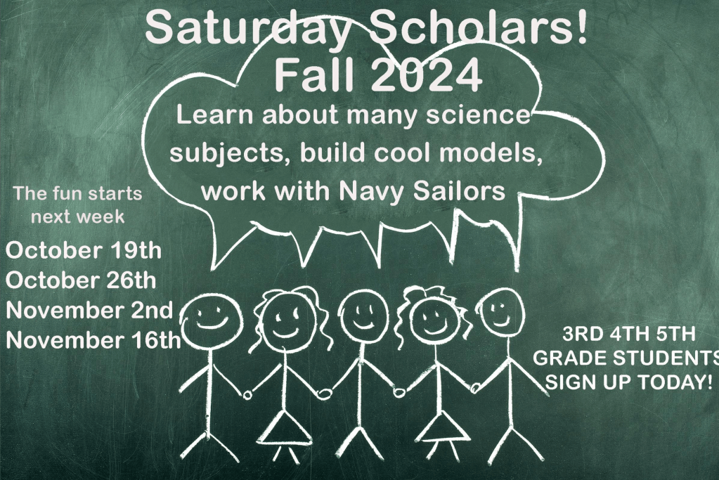 We have a few spots open for 3rd-6th grade students to participate in our 34th year of Saturday Scholars! This special partnership with the Navy SWMI is all about science! Students choose a science topic, create a model, and share their learning. It occurs over 4 Saturdays, 10/19, 10/26, 11/2, from 8:00-1:00 at Loma Verde and on 11/16 at the Navy SWMI Institute in Balboa Park (bus provided). Please sign your child up for this FREE amazing mentorship experience to learn about a science topic that interests them. The program provides lunch, and all the supplies needed to make this a great learning experience for our students. Pick up your application in the office. See Mrs. Snell or Mr. Hemmingway with questions.