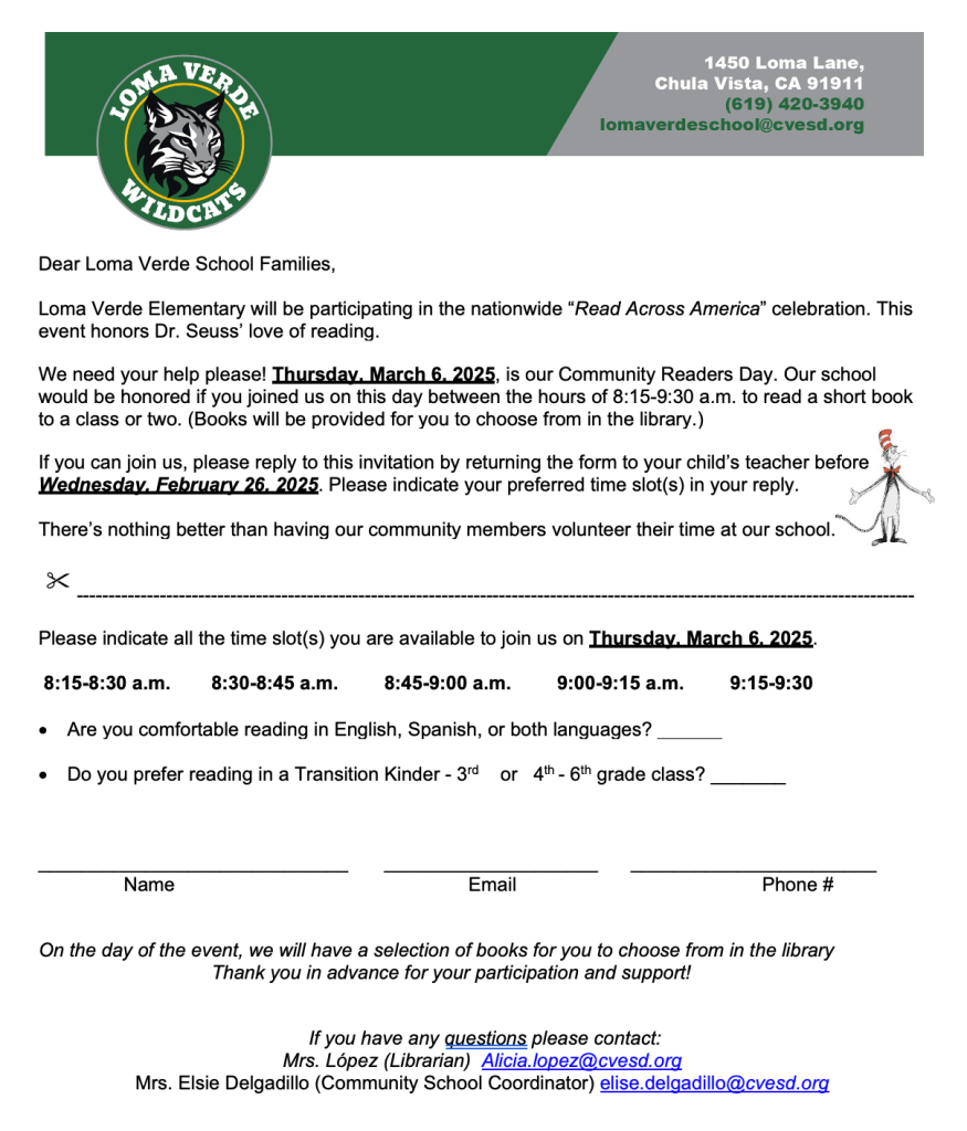 Join Us for National Read Across America Day at Loma Verde Elementary!