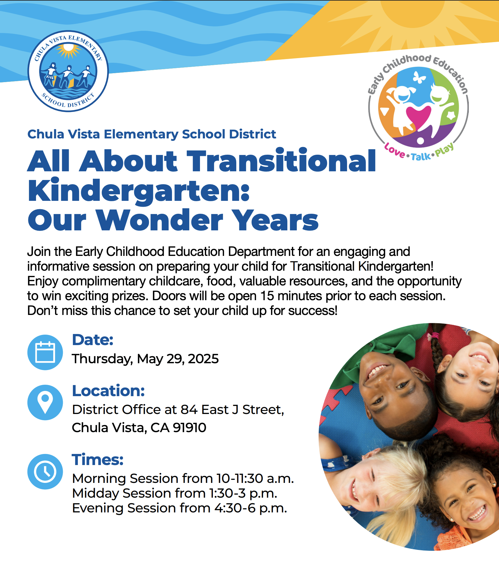 Open Enrollment for the 2025-26 school year will open on February 12, 2025, at 9 a.m. and Continuing Enrollment for the 2025-26 school year will open on May 27, 2025, at 9 a.m. Click here for the CVESD enrollment links.