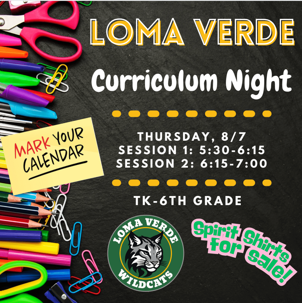Also, don’t miss our important Loma Verde Curriculum Night on Thursday, August 7, with two sessions available: