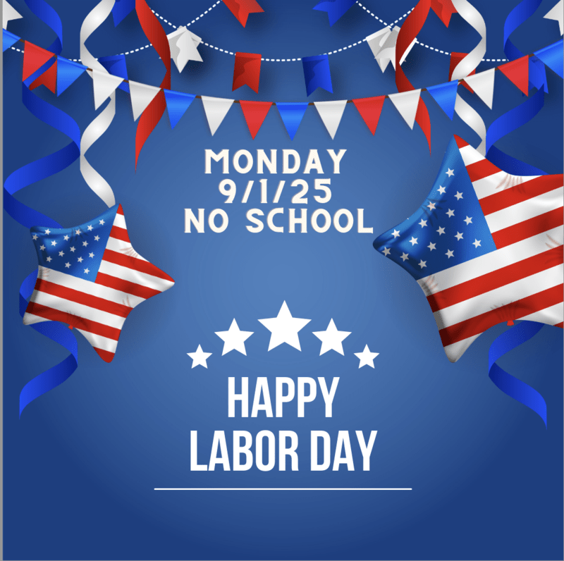There will be no school on Monday, September 1st in observance of Labor Day.