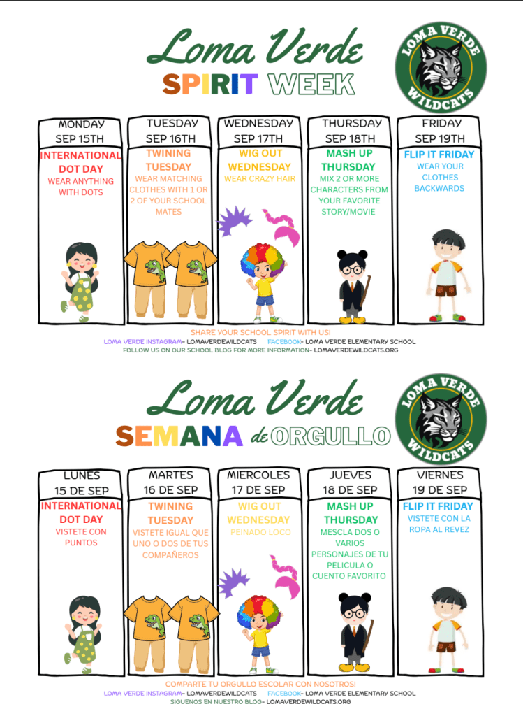 - Monday, 9/15-Friday, 9/19 Loma Verde Spirit Week