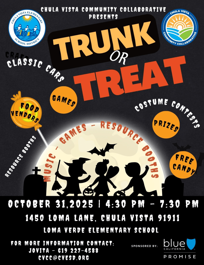 - Friday, 10/31 4:30-7:30 PM Trunk or Treat Event @ Loma Verde
