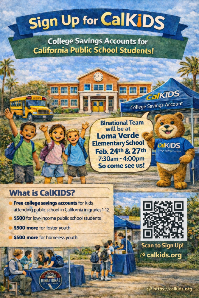 - Tuesday, 2/24 7:30-4:00 CalKids Scholarship Sign Up @ Loma Verde https://calkids.org/