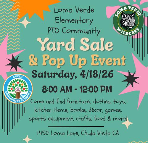 - Saturday, 4/18 8:00-11:00 Loma Verde PTO Yard Sale & Pop-Up Event