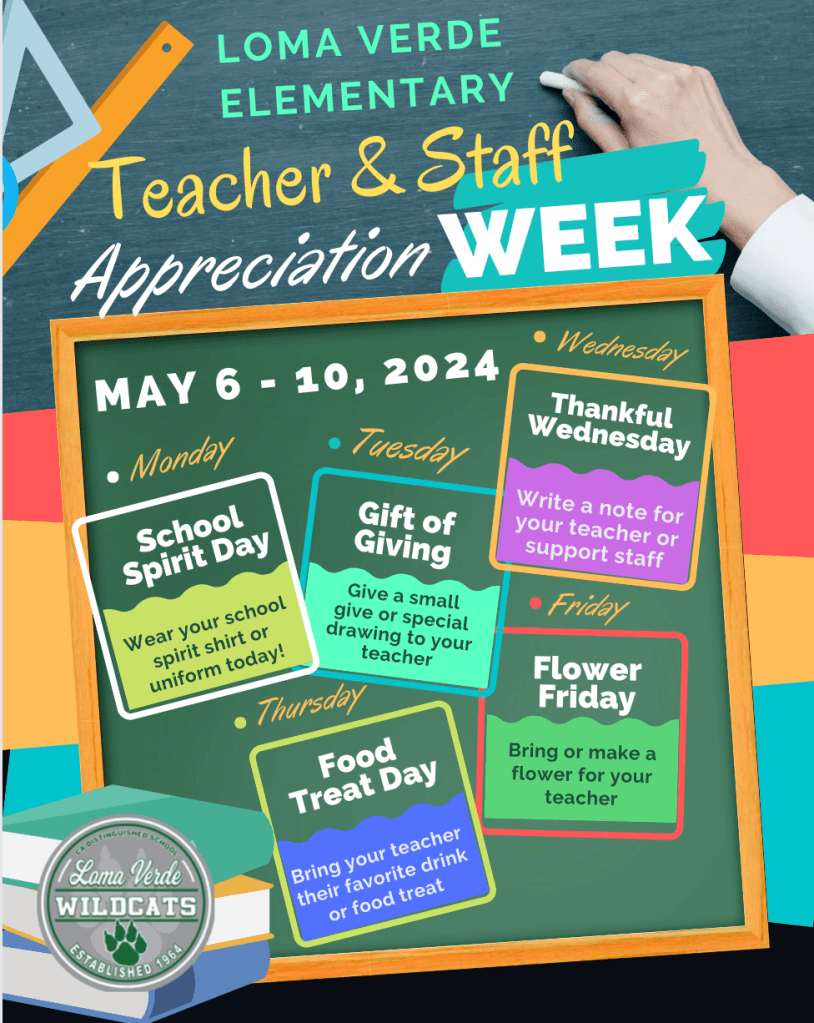 It was a very eventful week last week! We honored Andrea Morfin as our Optimist Award winner, enjoyed the talents of our Loma Verde students at the “Remote Control” Variety Show thanks to Ms. Fisher, learned about science at our Saturday Scholar Showcase for all to see, and had visiting firefighters to share about their career for our 6th graders. We are grateful for our staff and community volunteers who make Loma Verde an extra special place to learn! Thank you!